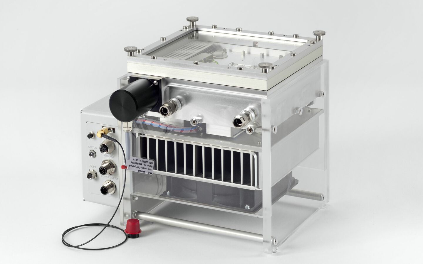 - Алюминиевый охлаждающий блок с пневматическими коннекторами и поперечным вентилятором.