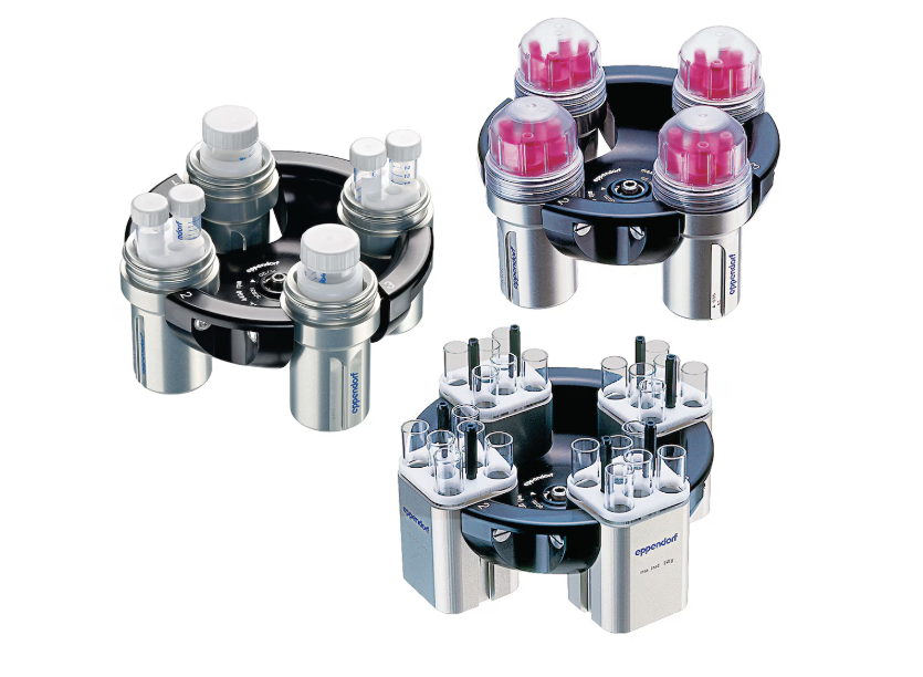 - Поддержка 6 вариантов роторов позволяет работать с различными типами проб: стандартные центрифужные трубки (1.5–2.0 мЛ), адаптеры для проб объемом 0.4, 0.5 мЛ, а также PCR-трубки (0.2 мЛ) или PCR-полосы.