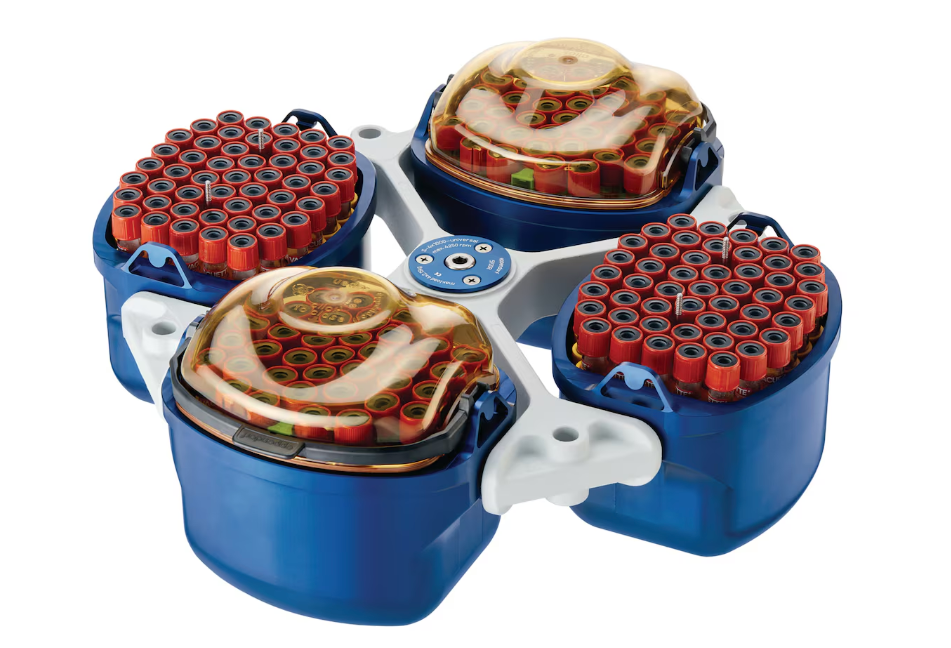 - Обеспечивает высокую производительность за счет универсальных бакетов, позволяющих центрифугировать различные форматы проб без необходимости смены роторов или адаптеров.
