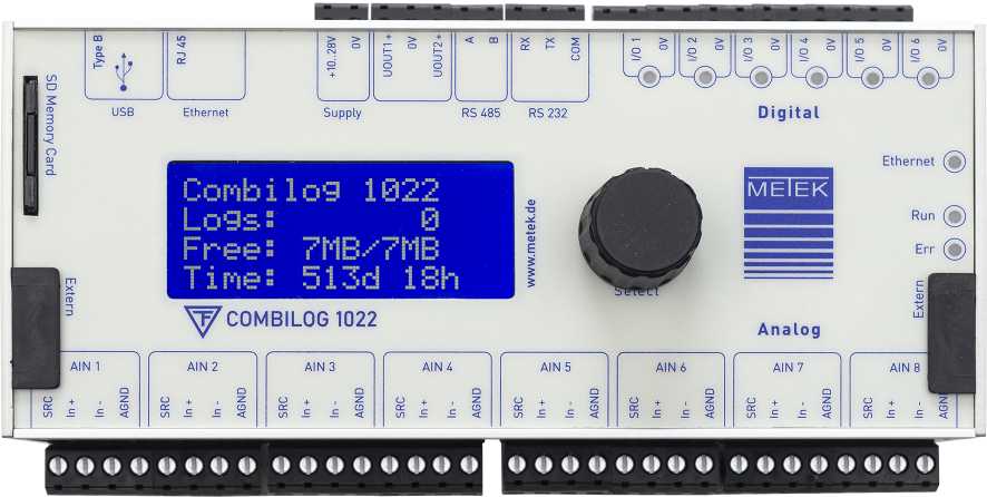 COMBILOG 1022 — это универсальный высокоточный дата-логгер от METEK Meteorologische Messtechnik GmbH, предназначенный для сбора, хранения и передачи метеорологических и иных данных. Прибор легко монтируется на стандартной направляющей 35 мм с помощью системы «snap-in clamp», что делает его идеальным для установки в шкафах управления и аналогичных системах.