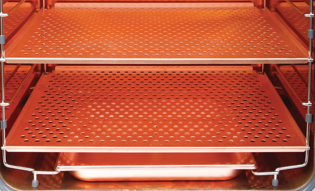 - Бесшовная камера: гладкая и бесшовная внутренняя поверхность из нержавеющей стали, которую легко очищать – никаких вентиляторов, воздуховодов или фильтров, способных стать источниками загрязнения.