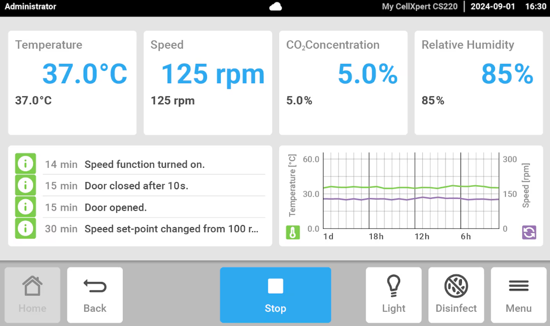 - Встроенные функции пользовательского управления и журналирования позволяют вести детальный аудит условий культивирования.