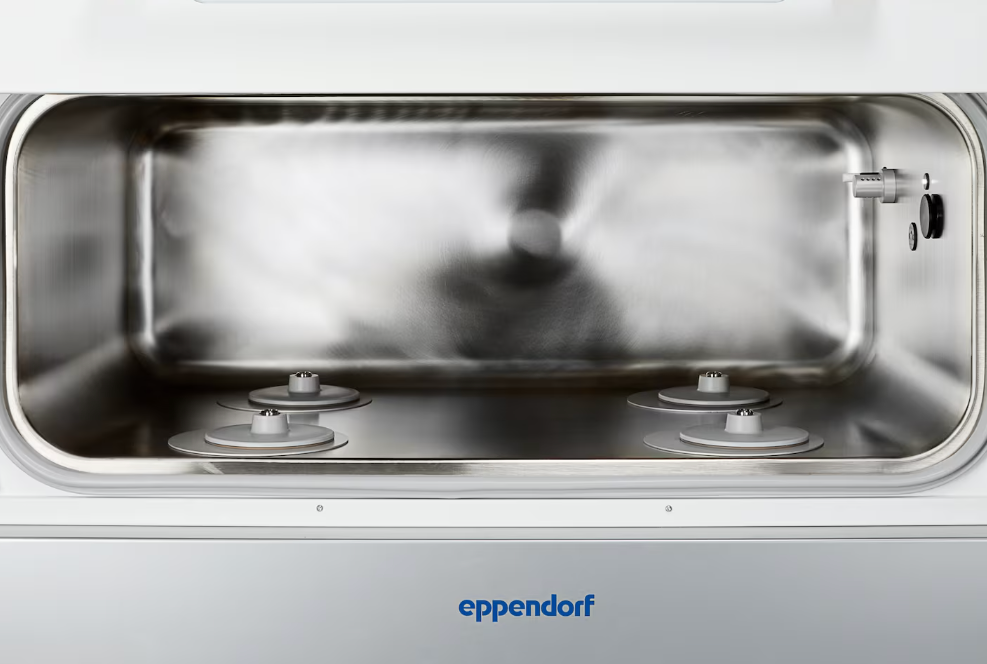 - Eppendorf X-drive с четырьмя поддерживающими осями обеспечивает работу без вибраций 24/7, а привод и шкив расположены в специальном отсеке, доступном спереди для легкого обслуживания и чистки.