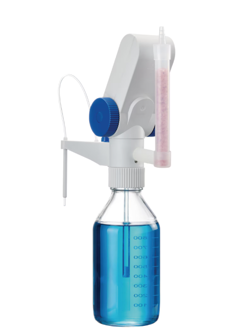 Eppendorf Top Buret – это инновационный бутылочный бюрет, разработанный для выполнения точных и удобных титрационных операций вручную. Благодаря интуитивно понятному цифровому управлению, пользователи могут легко установить нужный объем, а вращение колеса обеспечивает непрерывное и точное дозирование без необходимости повторной аспирации жидкости. Цифровой дисплей (от 10 µL до 999.9 mL) позволяет работать с практически любым объемом, ограниченным лишь размером вашей сырьевой бутылки.