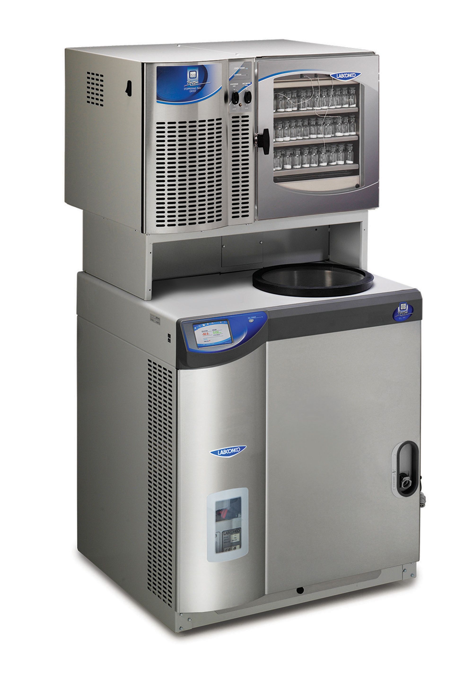 - 5‑дюймовый полноцветный сенсорный экран (емкостный) отображает в реальном времени параметры лиофилизатора и трей‑сушильного устройства, включая температуру коллектора, уровень вакуума и (опционально) систему определения конечной точки End‑Zone™.