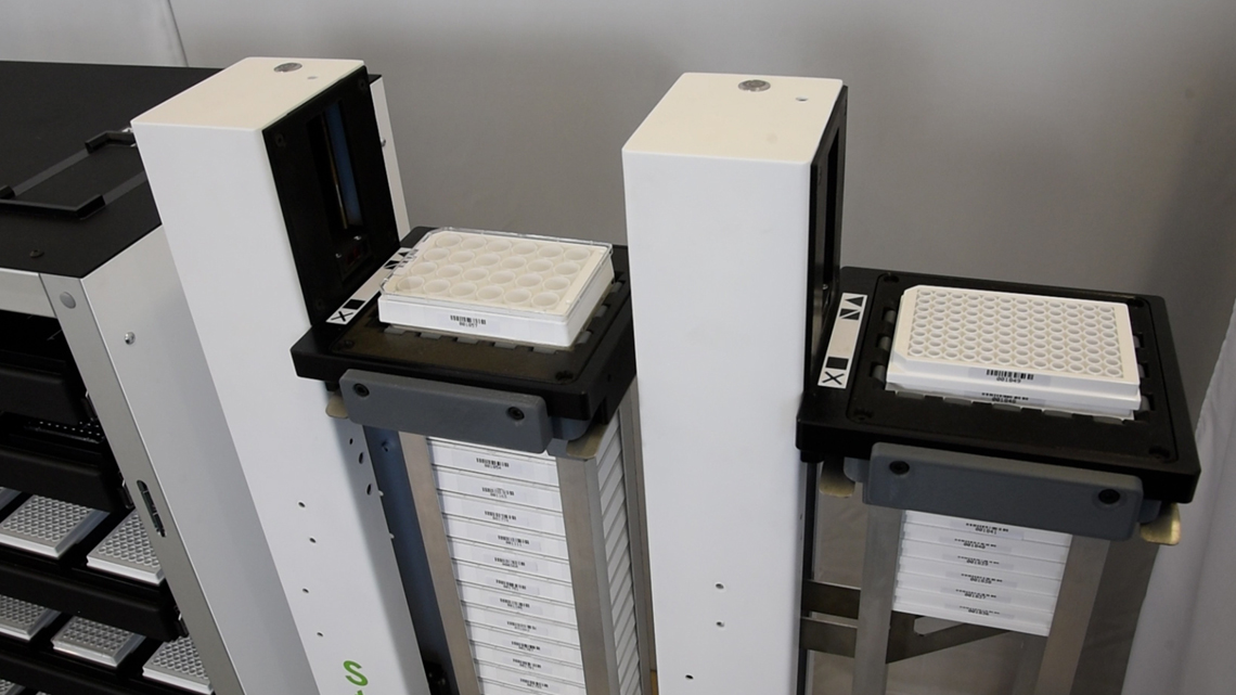 - Автономно переносит планшеты из инкубаторов к станциям измерения и обратно.