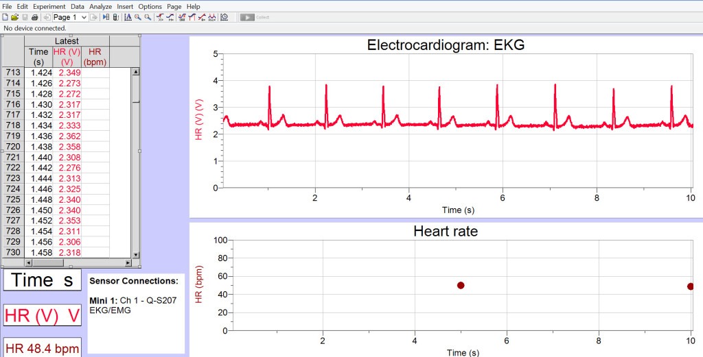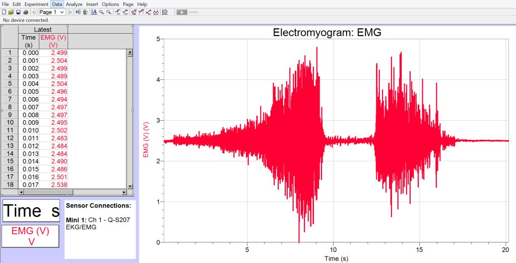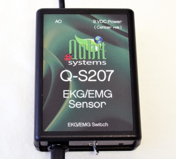 Сенсор Q-S207 от Qubit Systems измеряет электрические волновые формы, возникающие при сокращении сердечной мышцы (ЭКГ) и других мышц (ЭМГ). Поверхностные электроды регистрируют потенциалы действия, возникающие во время сокращений, которые затем фиксируются через интерфейс C610 LabQuest Mini и программное обеспечение C901 Logger Pro (при этом могут использоваться и другие системы, способные принимать аналоговый сигнал 0–5 В).