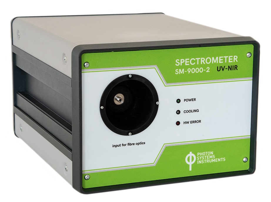 Spectrometer SM 9000 – это высокоточный и высокочувствительный спектрометр, который используется в оптоволоконной спектроскопии в диапазоне от ультрафиолетового (UV) до ближнего инфракрасного (NIR) излучения. Он может работать как автономное устройство или в составе других приборов PSI (например, µ-FluorCam) для точного анализа спектров облучённости, поглощения или эмиссии. Высокая чувствительность и термостабильность прибора позволяют регистрировать даже слабое излучение (например, флуоресценцию отдельных клеток).
