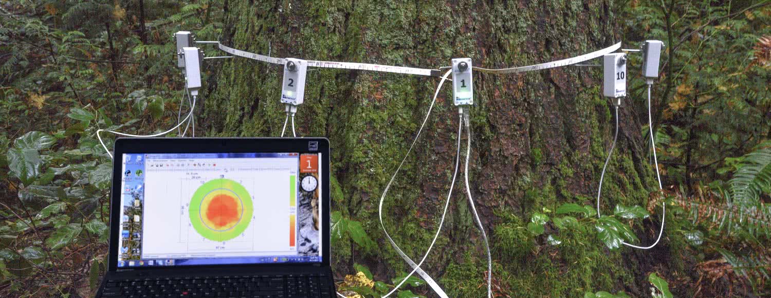 Определение зон гниения, полостей и структурных дефектов, влияющих на устойчивость дерева.Измерение качества древесины стволов и круглого леса