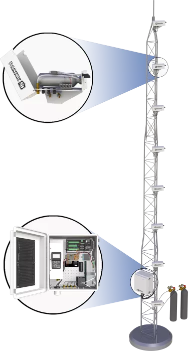 AP200 — это профессиональная система для прецизионного измерения вертикальных профилей концентраций углекислого газа (CO₂) и водяного пара (H₂O) на метеорологических мачтах и исследовательских платформах.