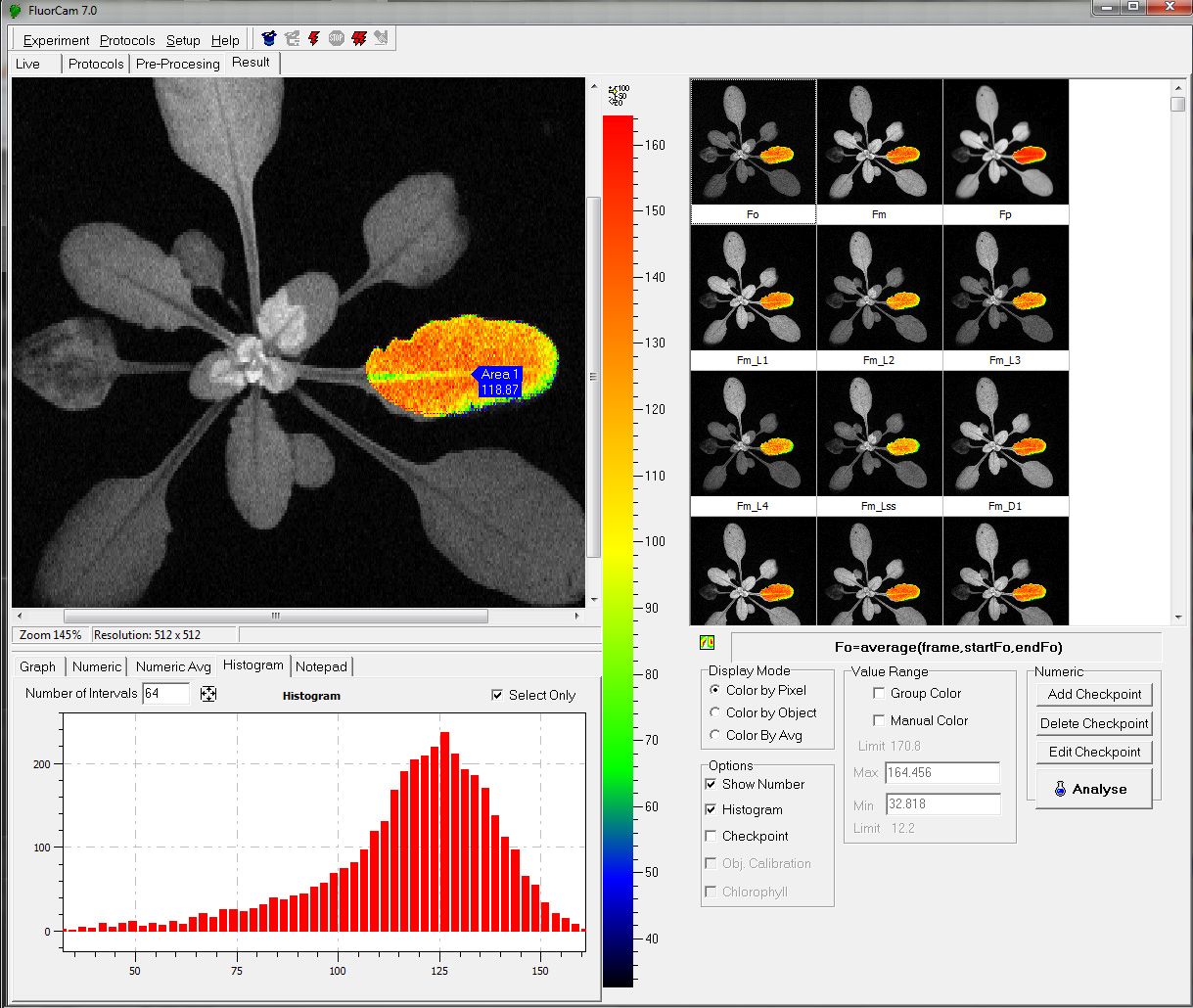 Closed FluorCam FC 800-C генерирует изображения флуоресценции в любой момент эксперимента и отображает их в ложной цветовой шкале. Камера поддерживает полный кинетический анализ, а также визуализацию флуоресцентных переходов, индуцированных актиничным светом или насыщающими вспышками. Все параметры освещения и временные характеристики определяются пользовательскими протоколами.