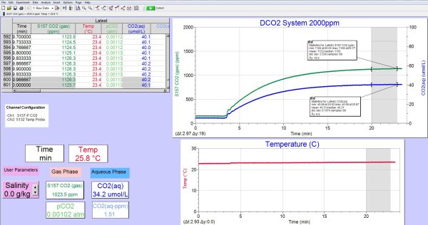 Системы для измерения растворённого CO₂ (DCO2) предназначены для определения парциального давления CO₂, растворённого в воде, при атмосферном давлении. Такие системы включают в себя DCO2-образец с необходимыми аксессуарами, инфракрасный CO₂-анализатор с встроенным газовым насосом, интерфейс для сбора данных и программное обеспечение.