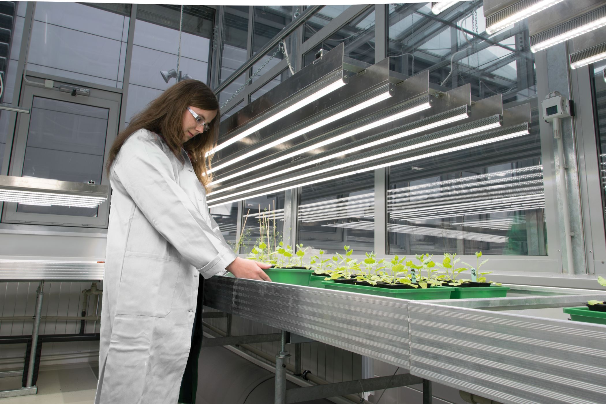 Исследовательские теплицы PSI предназначены для выращивания растений в условиях полностью контролируемой среды. Теплицы позволяют задавать и контролировать параметры освещения, температуры, влажности и концентрации CO₂. Управление параметрами осуществляется из центрального пункта управления или удалённо.