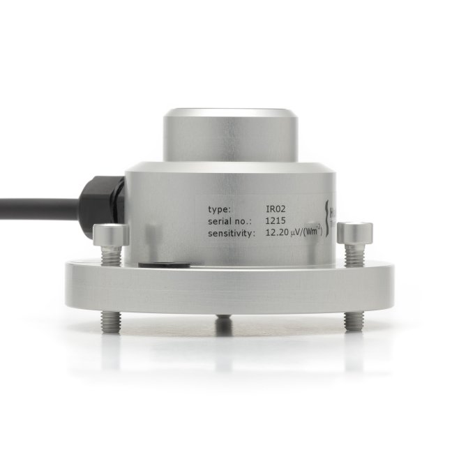 Пиргометр IR02 измеряет долгноволновое (фара-инфракрасное) излучение, получаемое плоской поверхностью, в ваттах на квадратный метр (Вт/м²) при угле обзора около 150°. Благодаря окну с порогом пропускания при 4,5 × 10⁻⁶ м прибор подходит для наблюдений как в дневное, так и в ночное время.