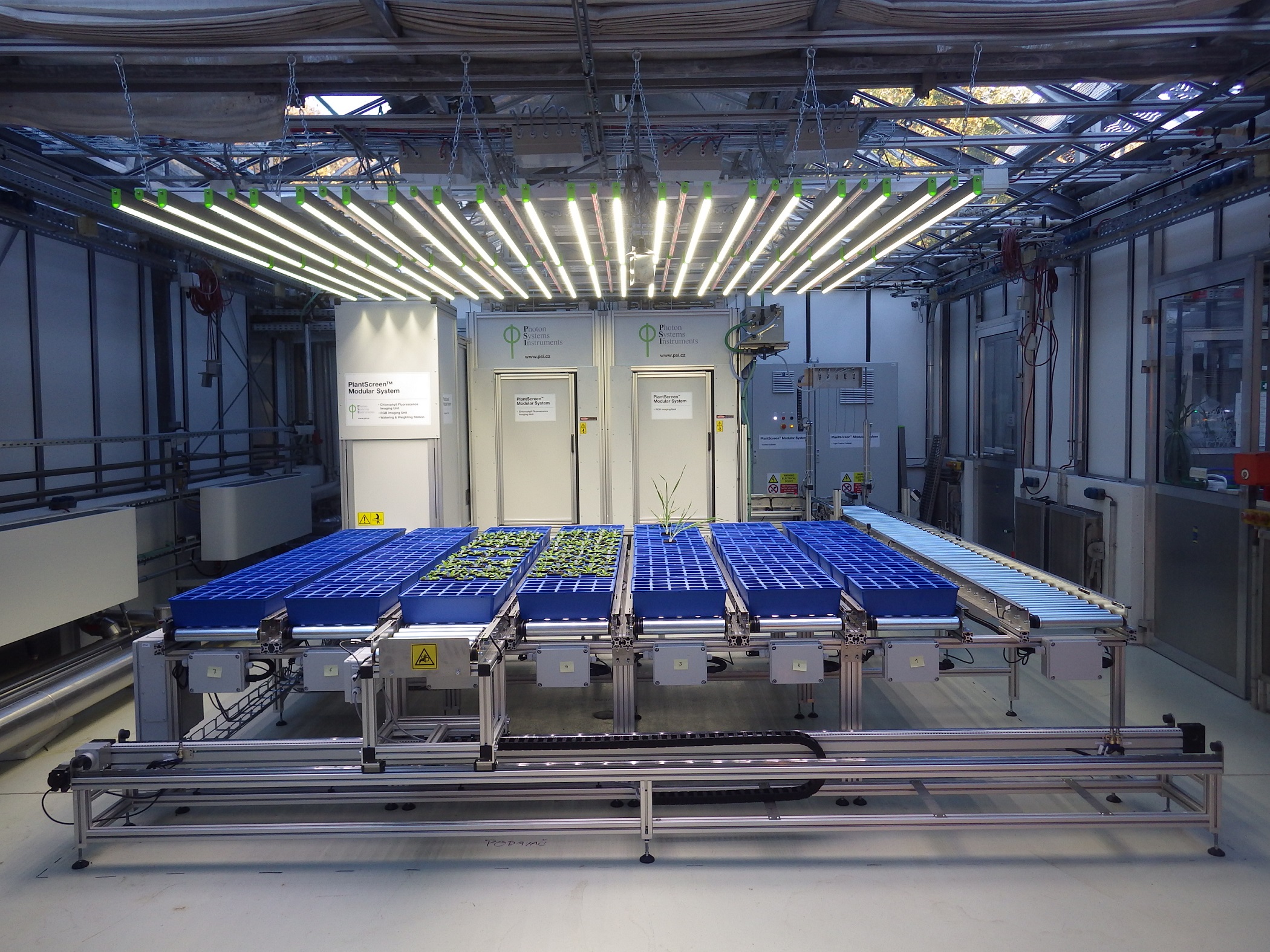 - Растения в отдельных горшках (вложенных в диски) перемещаются к модулям съёмки и станциям ирригации.