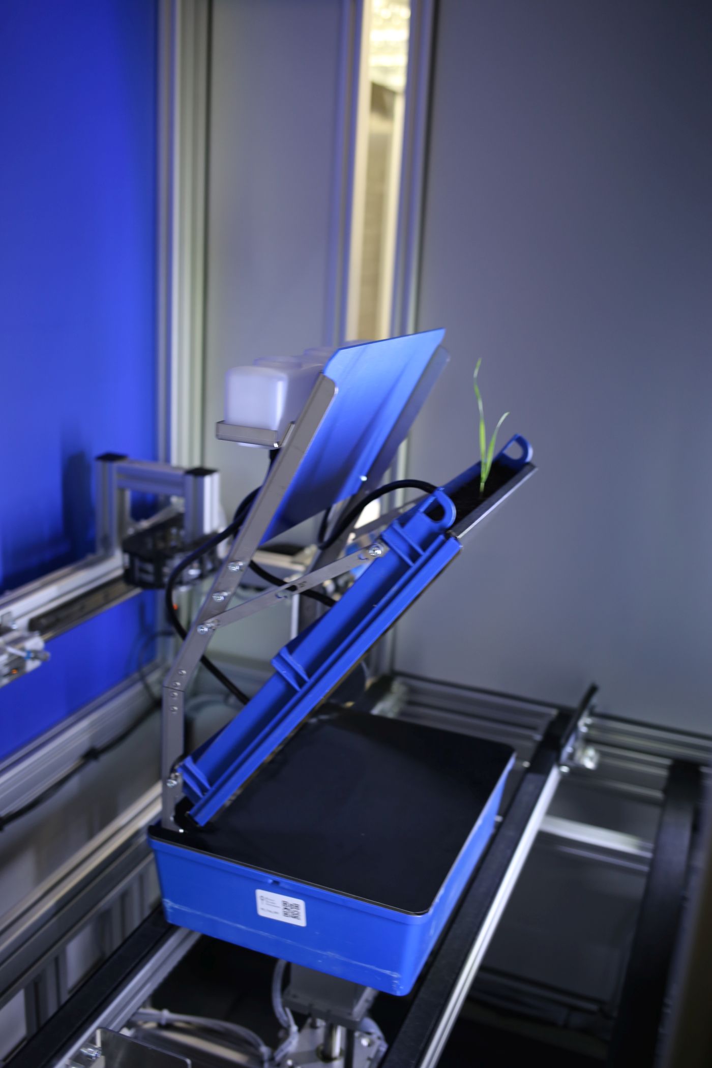 - Периодически в заданные интервалы поддоны автоматически перемещаются в светонепроницаемую камеру съёмки, где:
