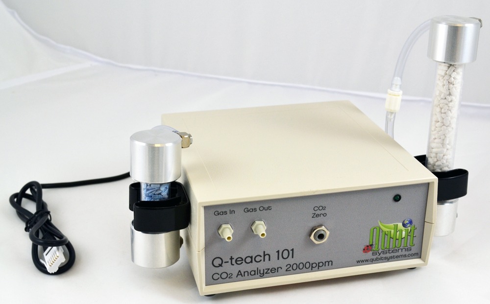 - Q-teach 101 CO₂ Analyzer (0–2000 ppm) с колоннами с содой лаймом и осушающими колоннами.